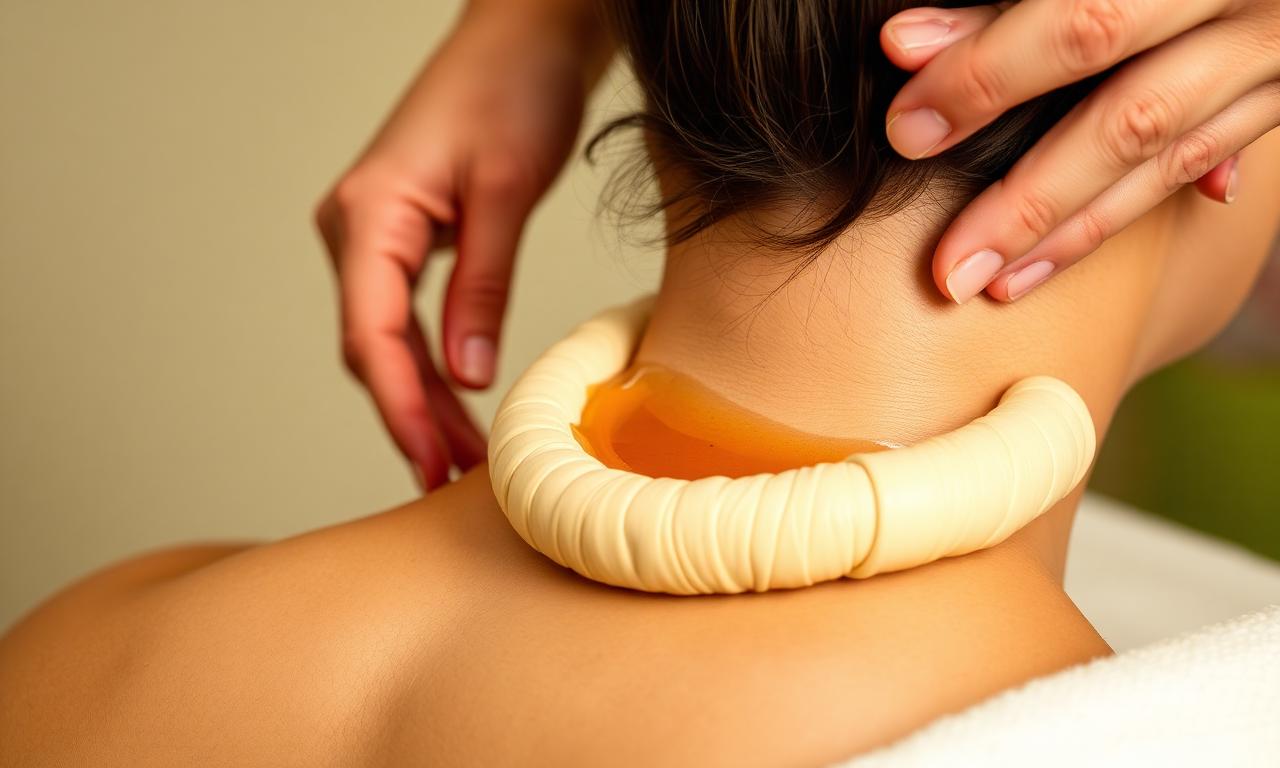 Warm oil retained over the cervical spine; relieves neck pain, cervical spondylosis and stress.